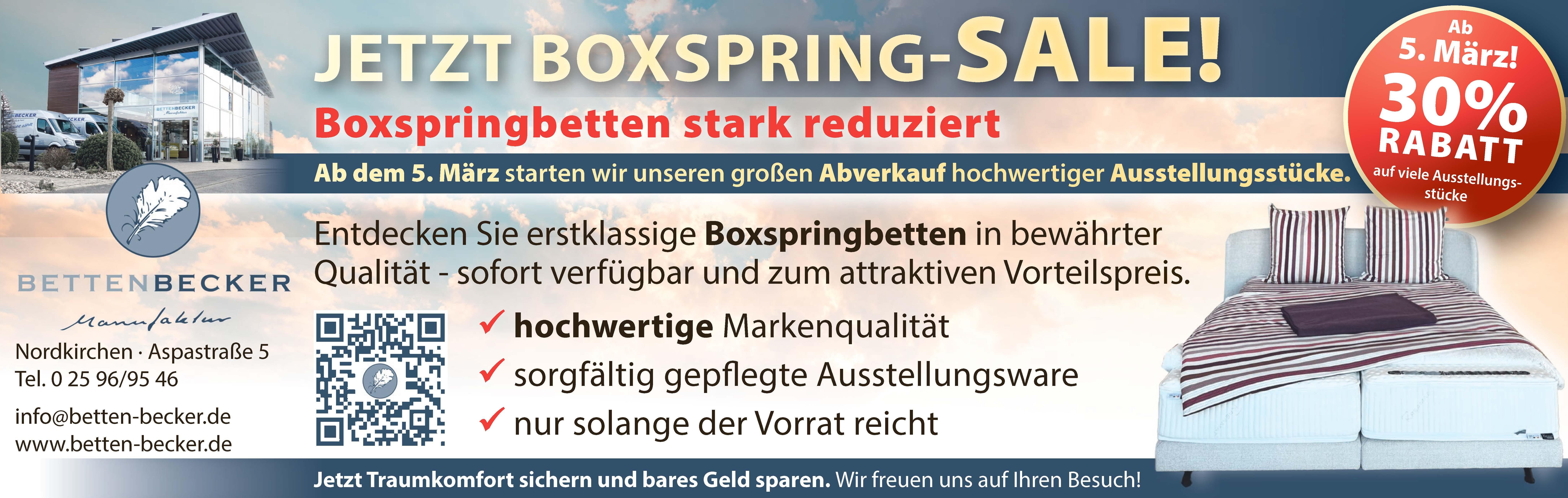 am 05.03.2026 startet unser großer Box-Spring Sale bei Betten Becker.